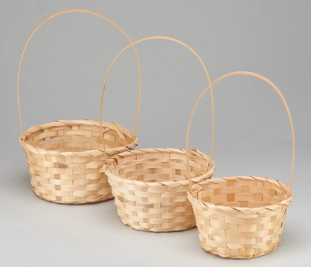 Набор корзин плетеных (бамбук), D16xH10/32 см, D18xH10/34 см, D21xH10/36 см, 3 шт., натуральный