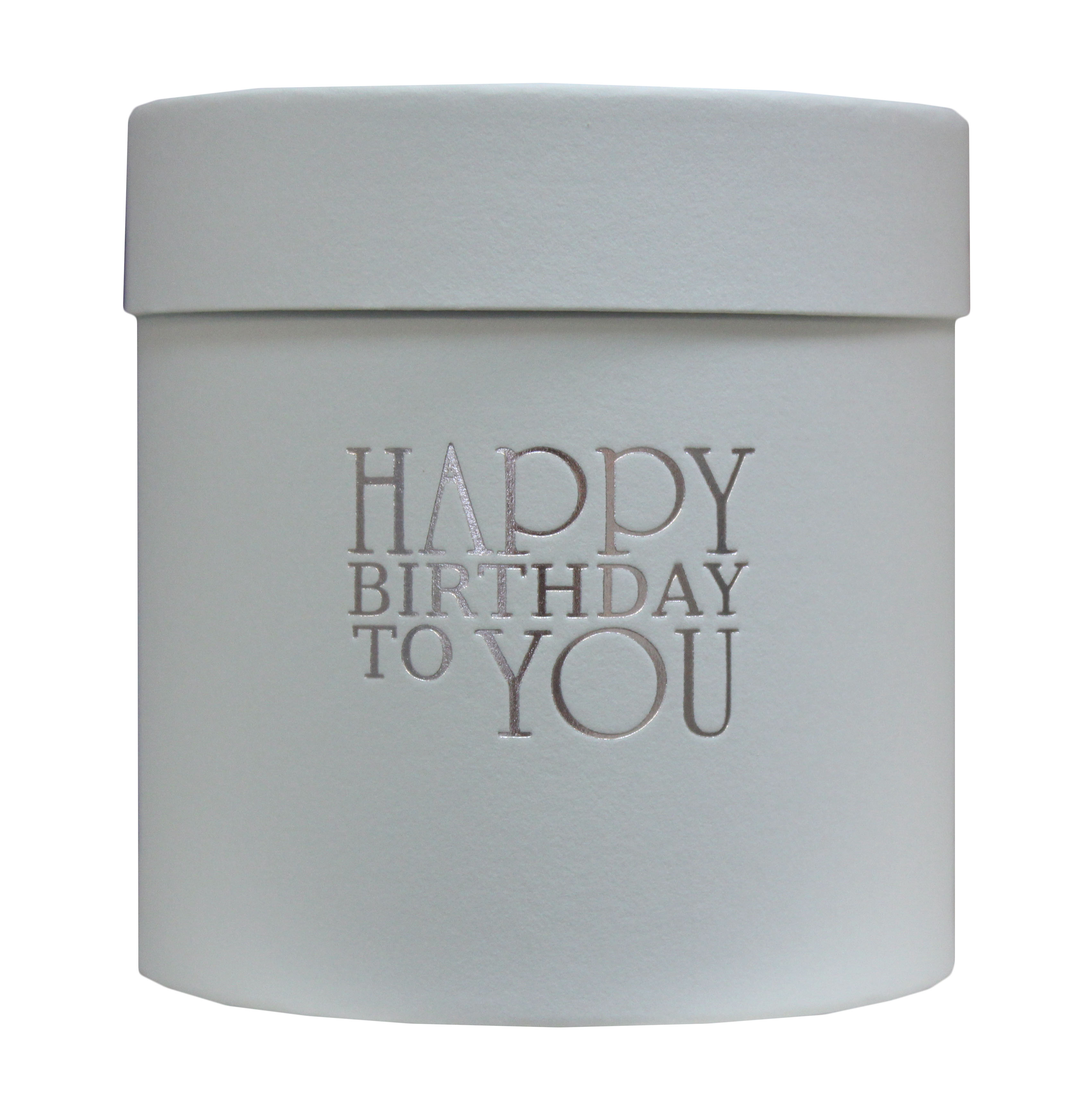 Коробка круглая (шляпная) с тиснением "Happy birthday" золото/серебро 140*140 мм, дизайн 10