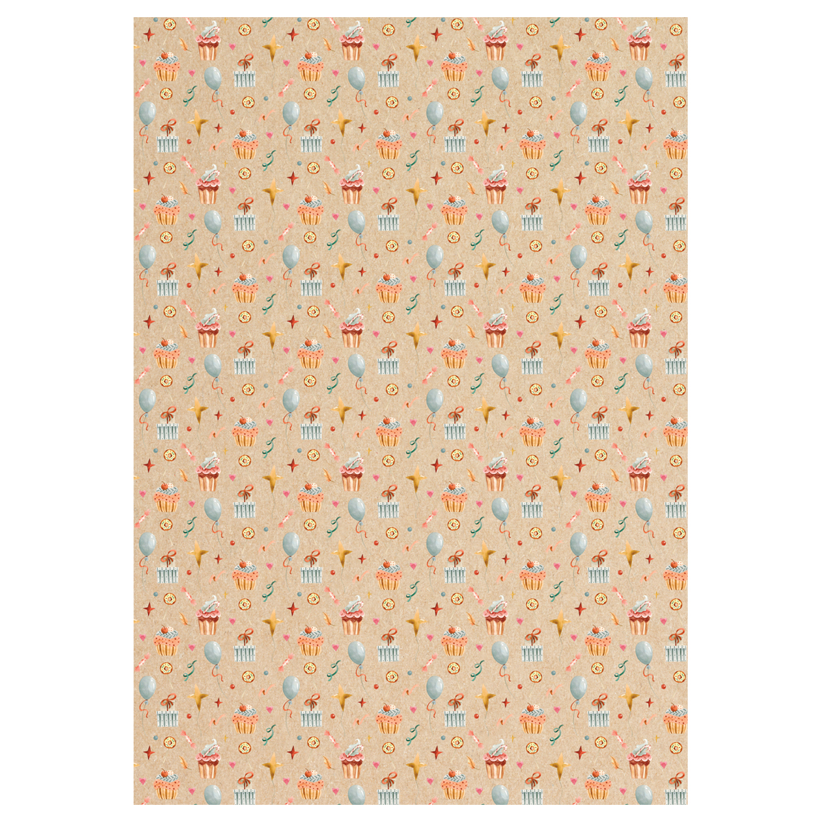Упаковочная бумага крафт 70*100см "Happy birthday", 70 г/м2, дизайн 4