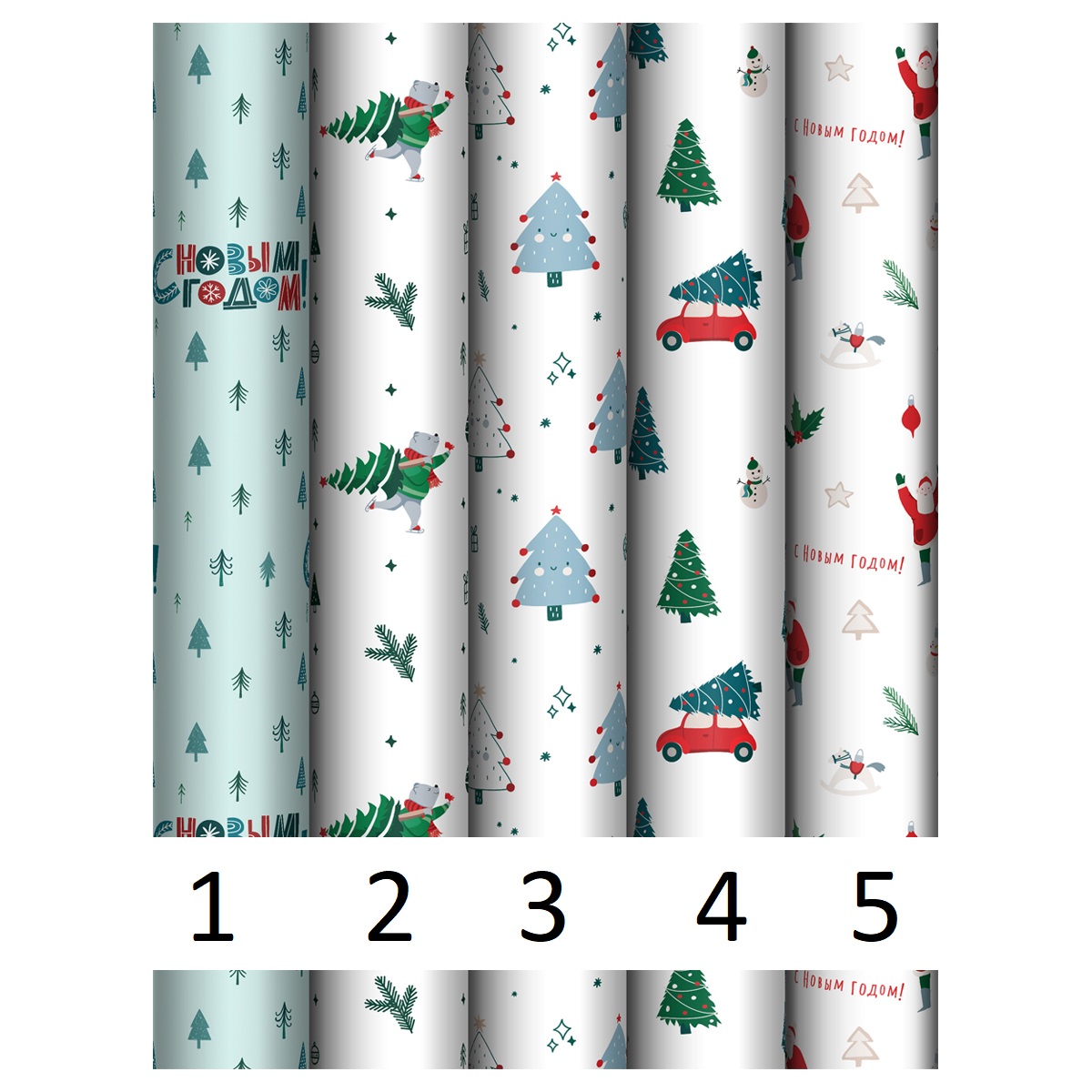 Упаковочная бумага глянц. 70*100см, "New Year", 80г/м2, дизайн 4