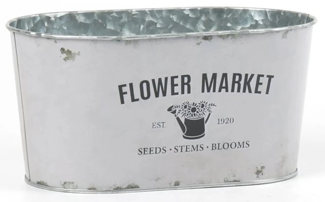 Декоративное овальное кашпо "Цветочный рынок" 22.5X13.7XH11.3 см. слоновая кость, металл