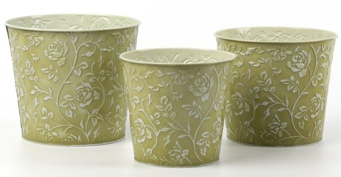 Набор декоративных кашпо 17X14.5CM B13,15X13.5CM B12,13.5X12.3CM B10, 3 шт., оливковый, металл