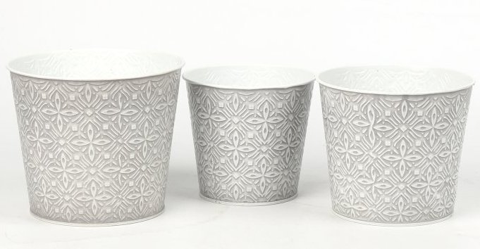 Набор декоративных кашпо 17X14.5CM B13,15X13.5CM B12,13.5X12.3CM B10, 3 шт., светло-серый, металл