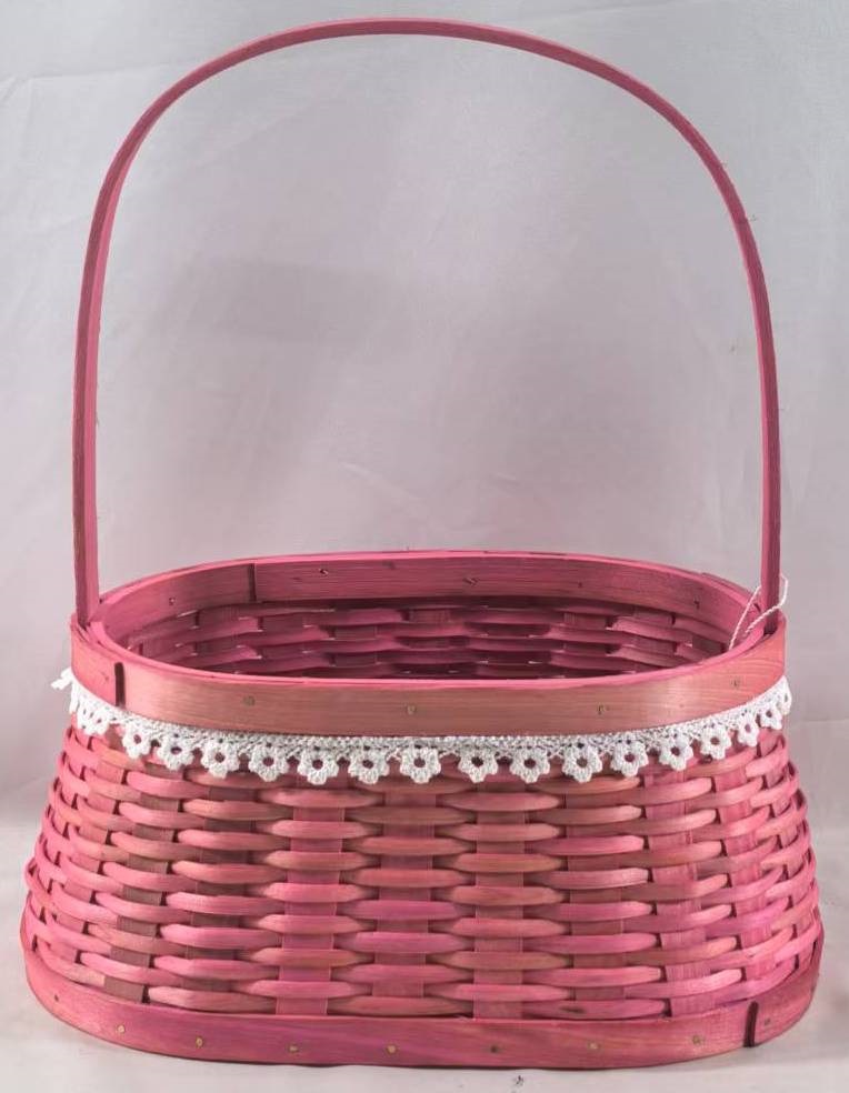 Корзина плетеная (секвойя), 21x14x10/29 B:26,5x17 см, 1 шт., розовый