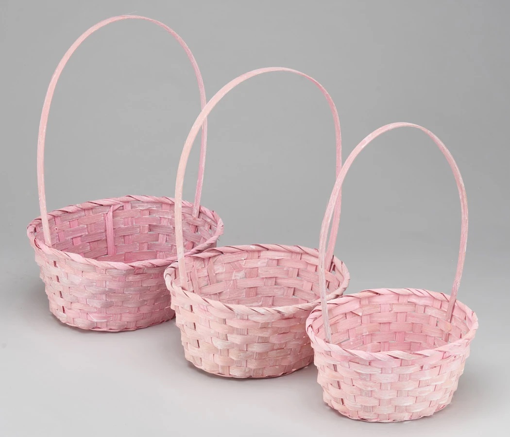 Набор корзин плетеных (бамбук), 22х18х10/34 см, 24х19х10/36 см, 27х21х10/38 см, 3 шт., светло-роз.