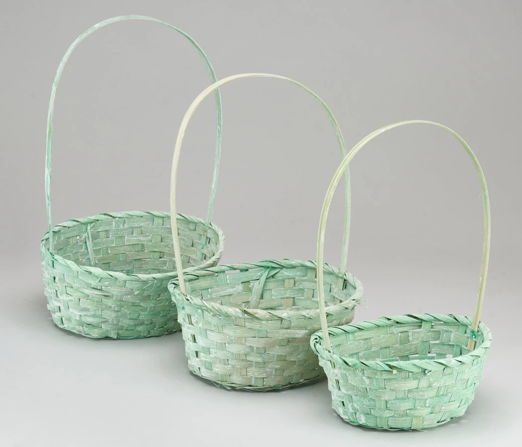 Набор корзин плетеных (бамбук), 22х18х10/34 см, 24х19х10/36 см, 27х21х10/38 см, 3 шт., светло-зел.