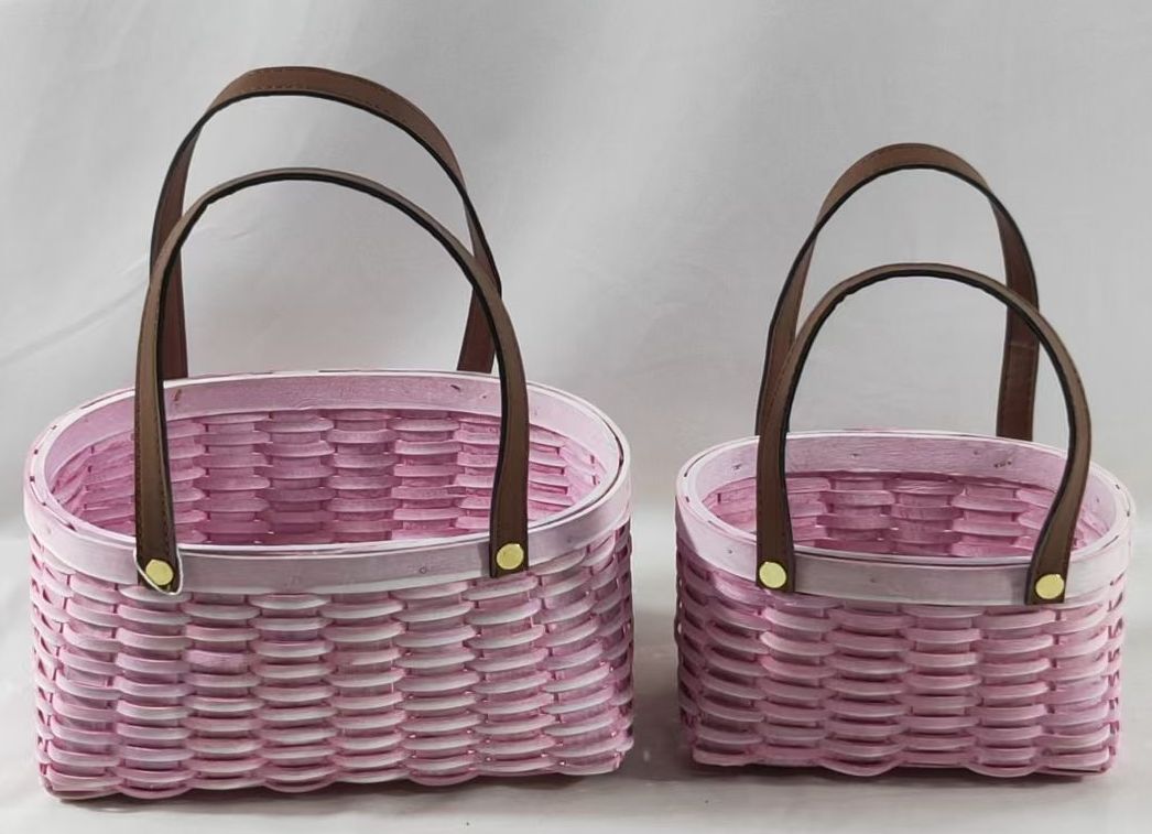 Набор корзин плетеных (секвойя), 24x19x11/25 B:22x14 см, 18x14x9,5/21 B:16x9 см, 2 шт., св.розовый