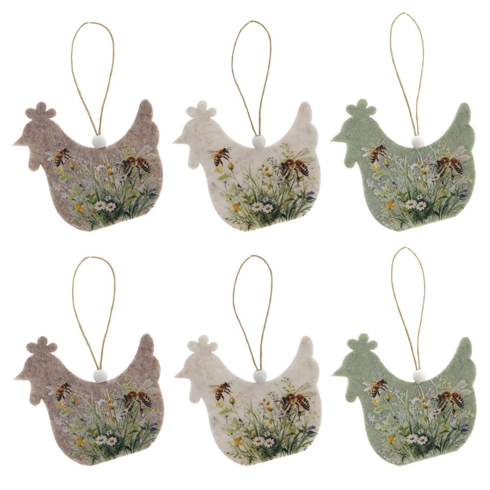 Набор из 6-ти подвесных украшений Курица, L25 W9 H1,5 см