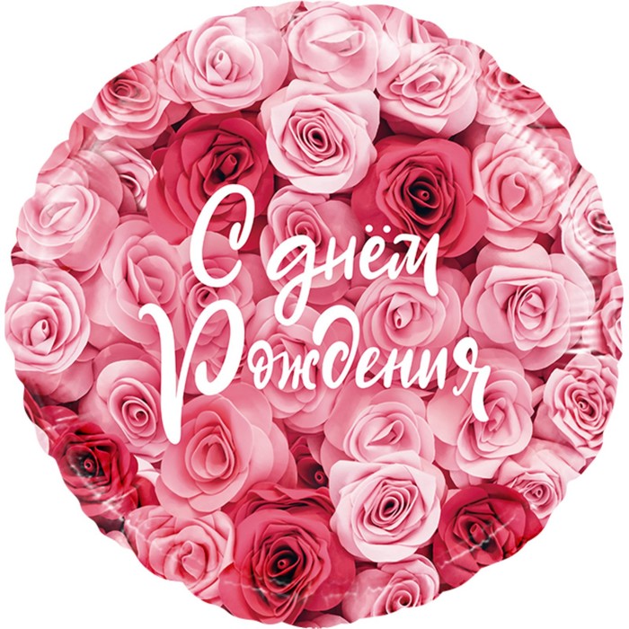 Шар (18''/46 см) Круг, С Днем Рождения! (симфония роз)