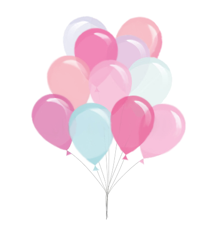 В связке 11 латексных шаров, наполненных гелием с обработкой Hi-Float (США).