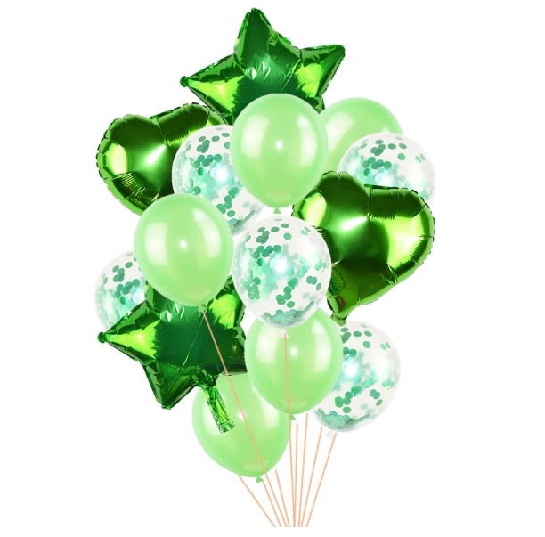 Связка шаров (4 фольгированных, 5 латексных и 5 с конфетти) Зеленые
